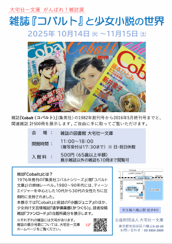 雑誌『Cobalt(コバルト)』所蔵全冊と 少女小説関連雑誌を展示します。